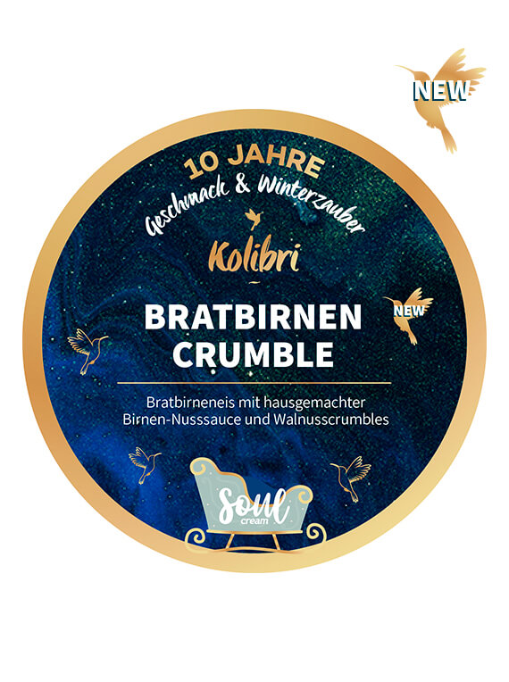 Bratbirneneis mit hausgemachter Birnen-Nusssauce und Walnusscrumbles